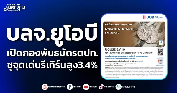 บริษัทหลักทรัพย์จัดการกองทุน ยูโอบี (ประเทศไทย) จำกัด หรือ บลจ.ยูโอบี ได้เสนอขายหน่วยลงทุนครั้งแรก (IPO) กองทุนเปิด ยูไนเต็ด พันธบัตรรัฐบาลต่างประเทศ USD 6M10 (UGUSD6M10) อายุประมาณ 6 เดือน มีประมาณการผลตอบแทน 3.40% ต่อปี (ข้อมูลจากอัตราผลตอบแทนที่เสนอโดยผู้ออกตราสาร หรือจากผู้ขาย ณ วันที่ 13 มกราคม 2569) กองทุนมีขนาดโครงการ 200 ล้านดอลลาร์สหรัฐ โดยเสนอขายในราคา 10 ดอลลาร์สหรัฐต่อหน่วย และยอดลงทุนครั้งแรกขั้นต่ำ 100 ดอลลาร์สหรัฐ