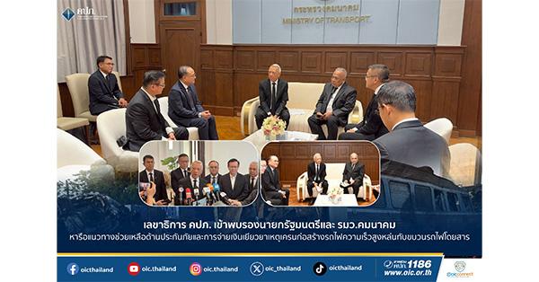 มิติหุ้น – เมื่อวันที่ 19 มกราคม 2569 นายชูฉัตร ประมูลผล เลขาธิการคณะกรรมการกำกับและส่งเสริมการประกอบธุรกิจประกันภัย (เลขาธิการ คปภ.) พร้อมด้วยนายอาภากร ปานเลิศ รองเลขาธิการ ด้านกำกับธุรกิจประกันภัย เข้าพบนายพิพัฒน์ รัชกิจประการ รองนายกรัฐมนตรีและรัฐมนตรีว่าการกระทรวงคมนาคม เพื่อหารือแนวทางการให้ความช่วยเหลือด้านประกันภัยและการจ่ายเงินเยียวยาแก่ทายาทผู้เสียชีวิตจากเหตุเครนก่อสร้างรถไฟความเร็วสูงหล่นทับขบวนรถไฟโดยสาร เมื่อวันที่ 14 มกราคม 2569 โดยมีนายชยธรรม์ พรหมศร ปลัดกระทรวงคมนาคม นายอนันต์ โพธิ์นิ่มแดง รักษาการผู้ว่าการรถไฟ แห่งประเทศไทย และนายสมพร สืบถวิลกุล กรรมการผู้จัดการใหญ่ บริษัท ทิพยประกันภัย จำกัด (มหาชน) เข้าร่วมการหารือ ณ ห้องรับรองรัฐมนตรีว่าการกระทรวงคมนาคม