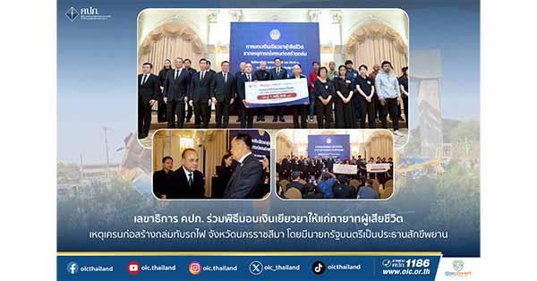 เลขาธิการ คปภ. ร่วมพิธีมอบเงินเยียวยาให้แก่ทายาทผู้เสียชีวิตเหตุเครนก่อสร้างถล่มทับรถไฟ จังหวัดนครราชสีมา โดยมีนายกรัฐมนตรีเป็นประธานสักขีพยาน