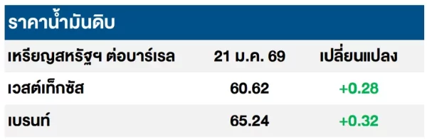 ราคาน้ำมันดิบปรับเพิ่ม หลังสหรัฐเผยว่าจะไม่เข้าครอบครองกรีนแลนด์ด้วยการใช้กำลังทหาร