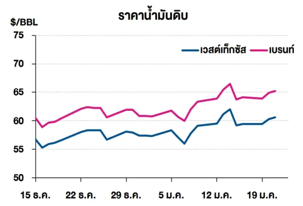 (+) ราคาน้ำมันดิบปรับเพิ่มขึ้น หลังนายโดนัลด์ ทรัมป์ ประธานาธิบดีสหรัฐฯ กล่าวสุนทรพจน์ต่อที่ประชุม WorldEconomic Forum ว่าสหรัฐฯจะไม่เข้าครอบครองกรีนแลนด์ด้วยการใช้กำลังทหาร นอกจากนี้ผู้นำสหรัฐฯ ได้เผยเพิ่มเติมผ่าน Social Truth Media ส่วนตัวว่า สหรัฐฯ ได้บรรลุกรอบข้อตกลงเกี่ยวกับการเข้าครอบครองกรีนแลนด์และดินแดนในภูมิภาคอาร์กติกทั้งหมดร่วมกับเลขาธิการ NATO ส่งผลให้สหรัฐฯ จะระงับการใช้มาตรการภาษีเพิ่มเติมอีก 10% กับชาติในยุโป ซึ่งเดิมมาตรการดังกล่าวจะมีผลบังคับใช้นับตั้งแต่วันที่ 1 ก.พ. 69 โดยท่าทีของผู้นำสหรัฐฯ ส่งผลให้ตลาดผ่านคลายความกังวลต่อความตึงเครียดระหว่างสหรัฐฯ และยุโรป