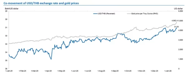 ยมออกประกาศเพิ่มเติมอีก 2 ฉบับที่เกี่ยวข้องกับธุ รกรรมทองคำ ได้แก่ (1) การกำหนดให้ร้านทองรายงานธุ รกรรมการแลกเปลี่ยนเงิน เพื่อเพิ่มการกำกับดูแลและติ ดตามข้อมูลการซื้อขายทองคำ และ (2) การพิจารณากำหนดเพดานการซื้ อขายทองคำผ่านแพลตฟอร์มออนไลน์ ในสกุลเงินบาท โดยอาจกำหนดวงเงินอยู่ที่ประมาณ 50–100 ล้านบาทต่อคนต่อวัน ซึ่งในปัจจุบันธุรกรรมดังกล่ าวมีสัดส่วนเพียงราว 1–1.5% ของมูลค่าการซื้อขายทองคำทั้ งหมด มาตรการเพิ่มเติมทั้งสองยังคงมี เป้าหมายเพื่อลดแรงกดดันด้ านการแข็งค่าของเงินบาท อย่างไรก็ดี คาดว่ามาตรการจะเริ่มมีผลบังคั บใช้ได้ภายในเดือนมีนาคม 2026 ซึ่งยังไม่ช่วยส่งสัญญาณเชิ งบวกต่อตลาดในระยะปัจจุบัน -