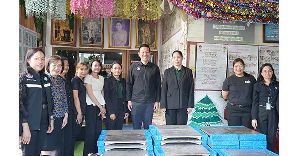 ซึ่งเป็นส่วนหนึ่งของโครงการ DEKS: Desks for Deks โต๊ะเรียนอัพไซเคิลเพื่อศูนย์พัฒนาเด็กก่อนวัยเรียน เพื่อช่วยเสริมสร้างสภาพแวดล้อมการเรียนรู้ที่เหมาะสม และสนับสนุนพัฒนาการของเด็กเล็ก โดยมี ศานนท์ หวังสร้างบุญ (ที่ 7 จากซ้าย) รองผู้ว่าราชการกรุงเทพมหานคร, ธราพร อำนวยสาร (ซ้าย) ผู้อำนวยการเขตภาษีเจริญ และพัทยา ทองมหา (ที่ 5 จากซ้าย) หัวหน้าศูนย์พัฒนาเด็กก่อนวัยเรียนวัดนวมประดิษฐ์ เป็นผู้รับมอบ เมื่อเร็วๆนี้ ณ ศูนย์พัฒนาเด็กก่อนวัยเรียน วัดนวมประดิษฐ์ กรุงเทพฯ