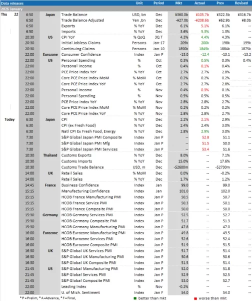 • ญี่ปุ่น, ยูโรโซน, อังกฤษ และสหรัฐฯ: ดัชนีผู้จัดการฝ่ายจัดซื้อภาคการผลิตและภาคบริการ (Manufacturing and Services PMI) เบื้องต้น เดือน ม.ค.