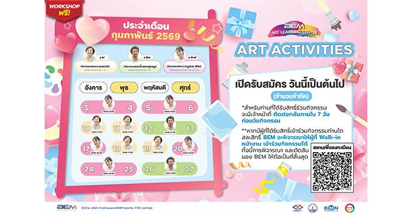 มิติหุ้น – ตารางงานอาร์ตเดือนกุมภาพันธ์ออกแล้ว! บริษัท ทางด่วนและรถไฟฟ้ากรุงเทพ จำกัด (มหาชน) หรือ BEM ชวนเติมความหวานในเดือนแห่งความรักกับการสร้างสรรค์งานศิลปะให้ตัวเองหรือทำเป็นของขวัญมอบให้คนรู้ใจ ไม่ว่าจะเป็น สอนวาดเซรามิก เอาใจสายคราฟท์จาก อ.รัชดา หนองบัว เจ้าของแบรนด์ Vilan by Familyclay สอนปั้นพระพุทธรูป โดย อ.ตะวัน สิโยพุทธวงศ์ ศิลปินผู้เชี่ยวชาญงานประติมากรรม และกิจกรรมยามเย็นให้ได้แวะเข้าร่วมกันก่อนกลับบ้านกับ การสอนวาดรูปบน iPad โดย อ.สาริน ปิติบัณฑิต เจ้าของแฟนเพจ Melt the moment โดยผู้ที่สนใจเข้าร่วมคลาสเตรียม iPad มาเอง