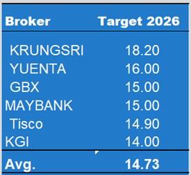 แรงขาย   ที่กดดันมา      2 วัน อาจกังวลว่าคุณศุภชัยจะเอาเงินมาจากไหน แต่อย่างที่เด็กแนวบอกว่าเกมส์นี้ถูกวางไว้ลงตัวจึงไม่ต้องกลัวเกินเหตุ  เพราะหลายแบงก์พร้อมให้เงินกับดีลหุ้นยักษ์ ที่แข็งแกร่ง และเห็นกำไรล่วงหน้าเกิน 2 หมื่นล้านบาทไม่น้อยกว่า 2 ปี  โบรกจึงมั่นใจแนะนำซื้อถ้วนหน้า โดยมีเป้าเฉลี่ยถึง 14.73 บาท บอกตั้งแต่ภาค 1 แล้วนะ โอกาสงี้ หายาก