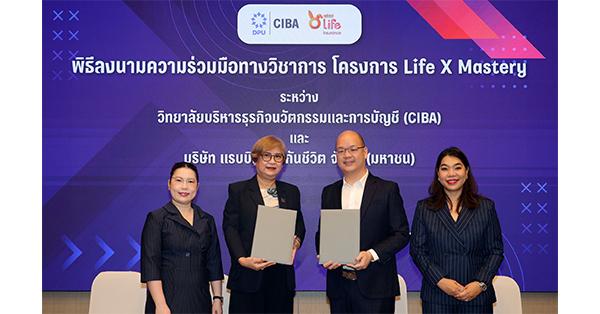 (ที่ 2 จากซ้าย) ร่วมลงนามบันทึกข้อตกลงความร่วมมือ (MOU) ภายใต้โครงการ Life X Mastery เพื่อพัฒนาศักยภาพคนรุ่นใหม่และยกระดับบทบาทตัวแทนประกันสู่การเป็น “นักออกแบบความมั่งคั่ง” ภายใต้แนวคิด “สร้างคน พลิกอาชีพ และสร้างความยั่งยืน” มุ่งเปิดโอกาสให้นักศึกษาจบใหม่ก้าวสู่เส้นทางวิชาชีพด้านการเงินอย่างมั่นคง สอดรับการเปลี่ยนแปลงของอาชีพตัวแทนประกันในยุคใหม่ และสะท้อนวิสัยทัศน์ของแรบบิท ประกันชีวิต ในการยกระดับบทบาทจากผู้ขายสู่ผู้เชี่ยวชาญด้านการวางแผนการเงินที่สร้างคุณค่าให้ลูกค้าในระยะยาว ณ มหาวิทยาลัยธุรกิจบัณฑิต เมื่อเร็ว ๆ นี้