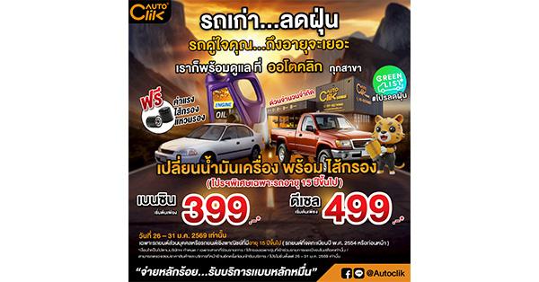 มิติหุ้น – ออโตคลิก (Autoclik) ศูนย์บริการรถยนต์ Fastfit มาตรฐานสากล เดินหน้าโครงการ Green List ขานรับปัญหามลพิษทางอากาศ จัดแคมเปญใหญ่ “โปรลดฝุ่น” สนับสนุนให้ผู้ใช้รถยนต์เก่าอายุ 15 ปีขึ้นไป ตรวจเช็กสภาพเครื่องยนต์และเปลี่ยนถ่ายน้ำมันเครื่อง เพื่อลดการปล่อยควันดำและฝุ่นพิษ PM 2.5 ด้วยดีลสุดคุ้ม ลดราคากว่า 50% เริ่มต้นเพียง 399 บาท ตั้งแต่วันที่ 26 – 31 มกราคม 2569 ณ ออโตคลิก ทุกสาขาทั่วประเทศ