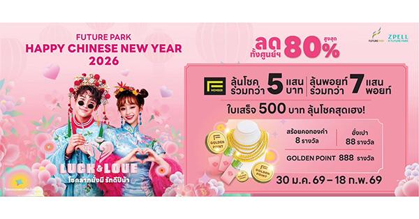 มิติหุ้น – ร่วมฉลองเทศกาลตรุษจีนปีม้า 2569 ศูนย์การค้าฟิวเจอร์พาร์คและสเปลล์ ตอกย้ำการเป็นมากกว่าศูนย์การค้าฯ ก้าวสู่จุดหมายปลายทางแห่งการ Shopping, Lifestyle & Community ที่ใหญ่ที่สุดในย่านกรุงเทพฯ ตอนเหนือ ด้วยการเปิดตัวแคมเปญ HAPPY CHINESE NEW YEAR 2026 ลดทั้งศูนย์การค้าฯ สูงสุด 80% พร้อมเสิร์ฟความ LUCKY เตรียมลุ้นโชคใหญ่แบบจัดเต็ม พิเศษ! สำหรับ F-MEMBER ลุ้นโชครวมกว่า 500,000 บาท และลุ้นพอยท์รวมกว่า 700,000 พอยท์ เริ่ม 30 ม.ค. – 18 ก.พ. 69