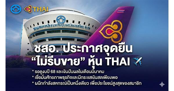 ชสอ. พิจารณาแล้วเห็นว่าการคงสถานะการถือครองหุ้น THAI ต่อไปภายหลังวันที่ 4 กุมภาพันธ์ 2569 เป็นกลยุทธ์ที่เหมาะสมที่สุดในสถานการณ์ปัจจุบัน เนื่องจากสหกรณ์ออมทรัพย์ส่วนใหญ่มีมีฐานะทางการเงิน ที่เข้มแข็งและมีกระแสเงินสดเพียงพอ ไม่มีความจำเป็นเร่งด่วนที่ต้องจำหน่ายหุ้นในช่วงที่ตลาดอาจมีความผันผวน จากการปลดล็อกหุ้นจำนวนมาก ซึ่งอาจส่งผลให้สหกรณ์ได้รับราคาที่ไม่สะท้อนมูลค่าที่แท้จริงของหุ้น