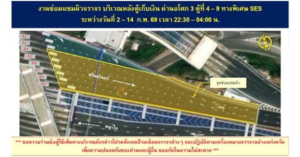 มิติหุ้น – บริษัท ทางด่วนและรถไฟฟ้ากรุงเทพ จำกัด (มหาชน) หรือ BEM ประชาสัมพันธ์แจ้งเบี่ยง การจราจร บริเวณหลังตู้เก็บเงินด่านอโศก 3 ตู้ที่ 4-9 ทางพิเศษศรีรัช เนื่องจากมีความจำเป็นต้องซ่อมแซมผิวจราจร เพื่อความปลอดภัยของผู้ใช้ทาง โดยผู้ใช้ทางยังสามารถสัญจรได้ตามปกติ