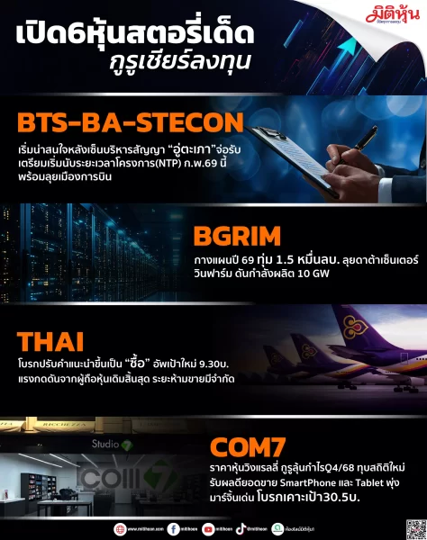 Infographicsมิติร้อน เปิด6หุ้นสตอรี่เด็ด กูรูเชียร์ลงทุน 1 กุมภาพันธ์ 2026 / เวลา 09:30 น. 91 แบ่งปัน FacebookTwitterWhatsAppTelegramLINECopy URL