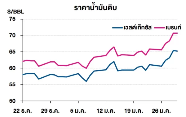 (-) ค่าเงินดอลลาร์สหรัฐฯ ปรับตัวแข็งค่าขึ้น หลังประธานาธิบดีสหรัฐฯ โดนัลด์ ทรัมป์ ประกาศเสนอชื่อ เควิน วอร์ช อดีตผู้ว่าการธนาคารกลางสหรัฐฯ (เฟด) ให้ขึ้นดำรงตำแหน่งประธานเฟดคนต่อไป ถัดจากวาระของ เจอโรม พาวเวล ที่จะสิ้นสุดลงในเดือน พ.ค. 69 ส่งผลให้สัญญาน้ำมันดิบที่กำหนดราคาด้วยสกุลเงินดอลลาร์สหรัฐฯ มีราคาแพงขึ้นสำหรับผู้ซื้อที่ถือครองสกุลเงินอื่น