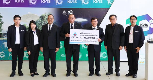 Mitihoon – Mr. Montri Rawanchaikul (center), Chief Executive Officer of PTT Exploration and Production Public Company Limited (PTTEP), presented a donation of 35 million baht to Dr. Pailin Chuchottaworn (3rd from right), Chairman of the Governing Board of Kamnoetvidya Science Academy (KVIS), to support the construction of the academy’s planetarium and observatory, which will serve as learning and research facilities in astronomy, physics, and future technologies. The facilities will also provide students with hands-on learning opportunities to better understand scientific principles, enhancing the scientific and technological capabilities of youth and human resources of the country.