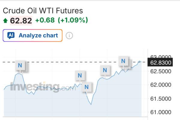 น้ำมัน WTI ดีดตัวเหนือ 62 ดอลลาร์ฯ หลังตลาดจับตาสต็อกน้ำมันดิบสหรัฐฯ