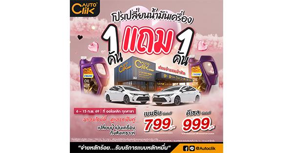 มิติหุ้น – กรุงเทพฯ – ออโตคลิก (Autoclik) ศูนย์บริการรถยนต์ Fastfit จัดโปรสุดเลิฟต้อนรับวาเลนไทน์ กับโปรโมชั่นเปลี่ยนน้ำมันเครื่อง 1 คัน แถมเปลี่ยนฟรี อีก 1คัน ตั้งแต่วันที่ 6 – 15 กุมภาพันธ์ 2569 ณ ออโตคลิก ทุกสาขาทั่วประเทศ (ด่วนจำนวนจำกัด)