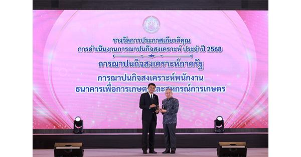 มิติหุ้น – นายณะที ไกรลพ ผู้ช่วยผู้จัดการธนาคารเพื่อการเกษตรและสหกรณ์การเกษตร (ธ.ก.ส.) รับรางวัล การฌาปนกิจสงเคราะห์ภาครัฐของสมาคมฌาปนกิจสงเคราะห์พนักงาน ธ.ก.ส. พร้อมด้วยนางสาวพรหมกร พรหมขัติแก้ว ผู้ช่วยผู้จัดการ ธ.ก.ส. รับรางวัลหน่วยงานความร่วมมือในการขับเคลื่อนงานการฌาปนกิจสงเคราะห์ในงานประกาศเกียรติคุณการดำเนินงานการฌาปนกิจสงเคราะห์ ประจำปี 2568 ภายใต้แนวคิด “การฌาปนกิจสงเคราะห์ : โอกาสและความท้าทายการเสริมสร้างหลักประกันความมั่นคงของครอบครัว” ซึ่งจัดขึ้นโดยกรมกิจการสตรีและสถาบันครอบครัว เพื่อส่งเสริมการดำเนินงานการฌาปนกิจสงเคราะห์ภาครัฐ และสมาคมฌาปนกิจสงเคราะห์ให้มีประสิทธิภาพ รวมทั้งยกย่องเชิดชูเกียรติและเสริมพลังการดำเนินงานการฌาปนกิจสงเคราะห์อย่างยั่งยืน