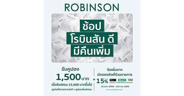 มิติหุ้น – นักช้อปห้ามพลาด! ห้างโรบินสัน ในเครือเซ็นทรัล รีเทล ชวนสัมผัสแคมเปญช้อปสุดคุ้ม “ช้อป โรบินสัน ดี มีคืนเพิ่ม” ที่ตั้งใจออกแบบมาเพื่อให้ทุกการช้อป คุ้มจริง จับต้องได้ ครบทั้งคูปองส่วนลด เงินคืน โปรโมชันบัตรเครดิต และลุ้นรางวัลใหญ่ รวมทุกความคุ้มไว้ในแคมเปญเดียว ตอบโจทย์ทุกไลฟ์สไตล์การช้อป ครอบคลุมทุกหมวดสินค้า ไม่ว่าจะเป็น ช้อปไอเทม แต่งบ้าน เติมลุคใหม่ให้ทุกมุมโปรด, อัปเดตเทรนด์แฟชั่นและบิวตี้ไอเทมยอดฮิตแบบไม่ตกเทรนด์ หรือเลือกของขวัญในช่วงเทศกาลสำคัญอย่างตรุษจีนและวาเลนไทน์ ก็สามารถช้อปได้อย่างต่อเนื่องตลอดแคมเปญ ยิ่งช้อปมาก ยิ่งได้คืนเพิ่มขึ้นกว่าเดิม คุ้มทุกการช้อป ตั้งแต่วันนี้ – 28 กุมภาพันธ์ 2569 (ยกเว้นวันที่ 27-28 กุมภาพันธ์ 2569) ที่ห้างโรบินสันทุกสาขา (ยกเว้นสาขาจังซีลอน) และช่องทางช้อปสุดสะดวกของห้างฯ