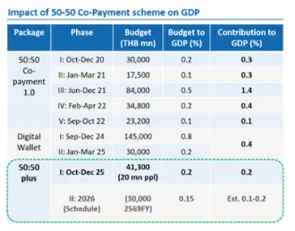 บทบาทสนับสนุนเศรษฐกิจในระยะถั ดไป ได้แก่ โครงการ Fast Pass ซึ่งหากมี การดำเนินการอย่างต่อเนื่อง อาจช่วยเร่งการตัดสินใจลงทุ นในประเทศ โดยสะท้อนจากมูลค่าคำขอรับส่ งเสริมการลงทุน (BOI) ที่ขยายตัวราว 57% YoY ในปี 2025 ประกอบกับมาตรการบรรเทาค่ าครองชีพเพื่อสนับสนุนการใช้จ่ ายภาคเอกชนได้แก่ นโยบายพักชำระหนี้ สำหรับโครงการ “ปิดหนี้ไว ไปต่อได้” ในวงเงินไม่เกิน 100,000 บาทต่อราย รวมถึง นโยบายลดค่าไฟฟ้า 3 บาทต่อหน่วย สำหรับครัวเรือนที่ใช้ไฟฟ้าไม่ เกิน 200 หน่วยต่อเดือน -