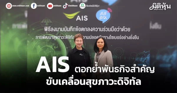 มิติหุ้น – AIS ร่วมกับสมาคมวิทยุและสื่อเพื่อเด็กและเยาวชน (สสดย.) ลงนามบันทึกข้อตกลงความร่วมมือขับเคลื่อนการพัฒนาสุขภาวะดิจิทัลและความปลอดภัยทางไซเบอร์อย่างยั่งยืน เนื่องในโอกาสวัน Safer Internet Day 2026 โดยมุ่งทำงานร่วมกันในการใช้ข้อมูล องค์ความรู้และกลไกความร่วมมือจากหลายภาคส่วน ท่ามกลางความท้าทายด้านสุขภาวะดิจิทัลที่ซับซ้อนขึ้นประเทศไทยยังขาดกลไกที่สามารถเชื่อมข้อมูลระดับชาติเข้ากับการขับเคลื่อนเชิงพื้นที่และการมีส่วนร่วมของภาคประชาสังคมอย่างเป็นระบบความร่วมมือครั้งนี้จึงมีเป้าหมายเพื่อเติมเต็มช่องว่างดังกล่าวในการออกแบบและดำเนินกิจกรรมและใช้เครื่องมือที่ส่งเสริมการใช้เทคโนโลยีดิจิทัลอย่างปลอดภัย มีคุณภาพ และรับผิดชอบต่อสังคมตอกย้ำบทบาทในการส่งเสริมสุขภาวะดิจิทัล (Digital Well-being)และการบริหารจัดการความเสี่ยงและโอกาสด้านสิ่งแวดล้อม สังคมและบรรษัทภิบาล (ESG) อย่างเป็นระบบ