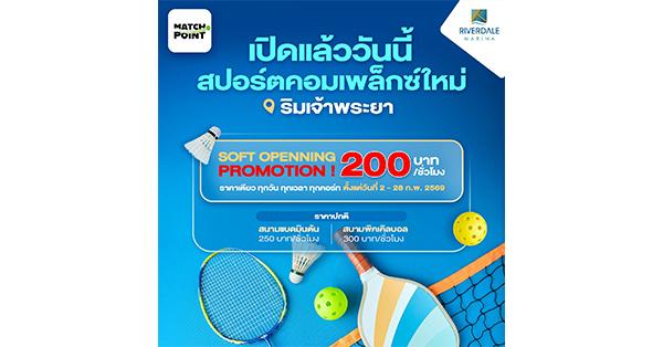 ฟิตสุขภาพให้แข็งแรงที่ MATCH POINT สปอร์ตคอมเพล็กซ์ใหม่ริมน้ำเจ้าพระยา ต้อนรับเดือนแห่งความรัก ราคาสุดพิเศษ @ Riverdale Marina เปิดแล้ววันนี้