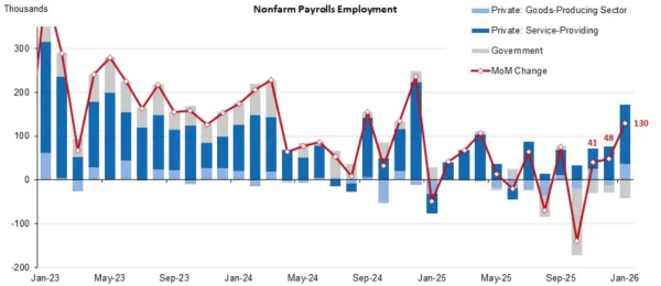 ฐฯ (Nonfarm Payrolls) ในเดือน ม.ค. 2026 เพิ่มขึ้น +1.3 แสนตำแหน่ง สูงกว่าคาดการณ์ของตลาดที่ +6. 5 หมื่นตำแหน่งเป็นอย่างมาก -