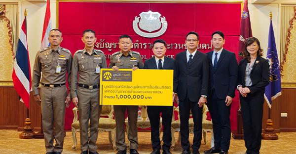 มิติหุ้น – นายพูนสิทธิ์ ว่องธวัชชัย (กลาง) ผู้ช่วยเลขานุการมูลนิธิกรุงศรี ในฐานะผู้แทนมูลนิธิกรุงศรี มอบเงินสนับสนุนจำนวน 1 ล้านบาท แก่กองบั