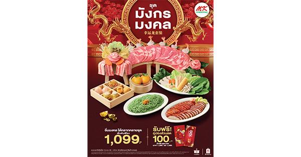 ●   เซตมังกรมงคลทานในร้าน เสิร์ฟความมงคลในร้านแบบชุดอลังการ มีให้เลือกทั้งชุดสุกี้หมูและเนื้อ เริ่มต้นเพียง 1,099 บาท พร้อมเมนูซิกเนเจอร์อย่าง เป็ดย่าง MK, บะหมี่หยก, ชุดผัก, ติ่มซำ และซาลาเปาส้มมงคล พร้อมโปรโมชั่นพิเศษ ตั้งแต่วันที่ 13 กุมภาพันธ์ – 3 มีนาคม 2569