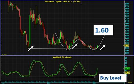 กราฟ SCAP ระดับ week อยู่ในระดับ Triple Bottom ซึ่งเป็นระดับที่เคยดีดตัวกลับเป็นขาขึ้นในระยะกลางทุกครั้ง โดยจะเป็นการฟอร์มตัวแบบ W-shape ที่จะมีแนวปรับขึ้นถึง 1.60 บาท เป็นอย่างน้อย เริ่มเดินหน้าจากนี้ไป