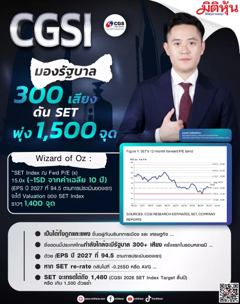 CGSI มองรัฐบาล 300 เสียง ดัน SET พุ่ง 1,500 จุด