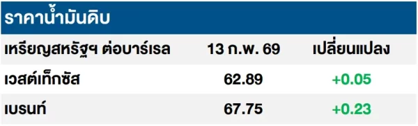 (+) ราคาน้ำมันดิบเวสต์เท็กซัสและเบรนท์ปรับเพิ่มขึ้น จากสถานการณ์ความตึงเครียดในตะวันออกกลางปรับเพิ่มสูงขึ้น หลังล่าสุดสหรัฐฯ ได้มีคำสั่งให้กองเรือบรรทุกเครื่องบิน เดินทางมายังภูมิภาคตะวันออกกลางเพิ่มเติม โดยคำสั่งเคลื่อนพลดังกล่าวมีขึ้นหลังในช่วงเดือนที่ผ่านมา กองทัพสหรัฐฯ ยังคงดำเนินการเคลื่อนย้ายยุทโธปกรณ์ทางทหารเข้ามาในภูมิภาคอย่างต่อเนื่อง โดยตลาดมองว่าการเคลื่อนพลเข้ามาอย่างต่อเนื่องเป็นการกดดันอิหร่านให้บรรลุข้อตกลงภายในเดือน มี.ค. 69