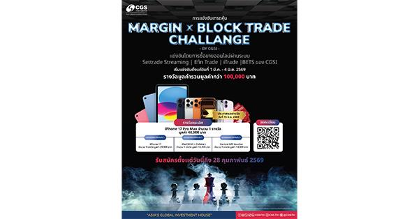 มิติหุ้น – [ประเทศไทย, 16 กุมภาพันธ์ 2569] บริษัทหลักทรัพย์ ซีจีเอส อินเตอร์เนชั่นแนล (ประเทศไทย) จำกัด หรือ CGSI เปิดตัวกิจกรรมการแข่งขันการลงทุนสุดเข้มข้น “Margin x Block Trade Challenge” ให้เวทีนักลงทุนได้ทดสอบฝีมือจริงในตลาดจริง ผ่านการวางกลยุทธ์ การบริหารพอร์ตและการใช้เครื่องมือการลงทุนที่มีเลเวอเรจอย่างมีประสิทธิภาพ ทั้งบัญชี Credit Balance และบัญชี TFEX สำหรับ SSF Block Trade ภายใต้กติกาที่โปร่งใส เป็นธรรม และได้มาตรฐาน พร้อมชิงรางวัลรวมมูลค่ากว่า 100,000 บาท