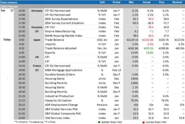 - สหรัฐฯ: รายงานปริมาณการยื่นขอสินเชื่อที่อยู่อาศัย (MBA Mortgage Applications) สิ้นสุดสัปดาห์ ณ วันที่ 13 ก.พ., ยอดคำสั่งซื้อสินค้าคงทน (Durable Goods Orders) เบื้องต้น, ยอดที่อยู่อาศัยเริ่มสร้าง (Housing Starts), ยอดใบอนุญาตก่อสร้างบ้าน (Building Permits) เดือน เดือน ธ.ค. และผลผลิตภาคอุตสาหกรรม (Industrial Production) เดือน ม.ค.
