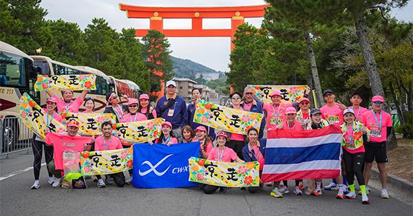 KYOTO MARATHON 2026 มีนักวิ่งจากทั่วโลกกว่า 16,000 คน เส้นทางเริ่มต้นที่สนามกีฬาทาเคบิชิเกียวโต ผ่านสถานที่สำคัญอย่างป่าไผ่อาราชิยามะ วัดทองคินคะคุจิ วัดนินนาจิ และศาลเจ้าคามิโมะ รวมถึงวิวภูเขา 5 ลูกอันเป็นเอกลักษณ์ ตลอดการแข่งขันนักวิ่งจะได้รับการดูแลด้วยอาหาร น้ำดื่ม และกำลังใจจากประชาชนและพระจากวัดนินนาจิ สร้างประสบการณ์ฟูลมาราธอนที่ผสานศิลปะ วัฒนธรรม และจิตวิญญาณของเกียวโตอย่างแท้จริง โดยหน่วยงานภาครัฐของเกียวโตจะนำรายได้จากการจัดงานไปช่วยฟื้นฟูพื้นที่ ที่ได้รับผลกระทบจากแผ่นดินไหวในญี่ปุ่น โดยเมืองเกียวโตเป็นต้นกำเนิดของแบรนด์ WACOAL และ CW-X