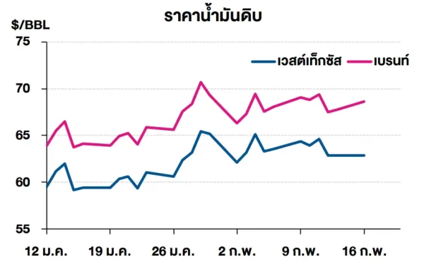 (+/-) การเจรจาสันติภาพที่กรุงเจนีวาระหว่างรัสเซียและยูเครนเป็นเวลา   2 วันสิ้นสุดลงโดยยังคงไม่สามารถบรรลุข้อตกลงในประเด็นหลัก ด้านประธานาธิบดีโวโลดีเมียร์ เซเลนสกี ระบุว่ารัสเซียกำลังถ่วงความพยายามที่สหรัฐฯ เป็นตัวกลางในการยุติสงครามที่ยืดเยื้อมา 4 ปี ส่งผลให้ตลาดยังคงประเมินความเสี่ยงต่อการส่งออกน้ำมันของรัสเซียในระยะถัดไป