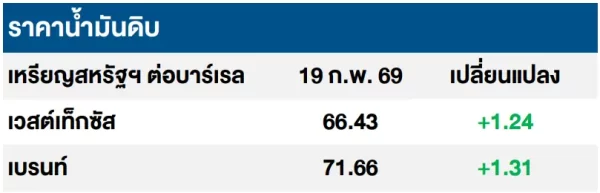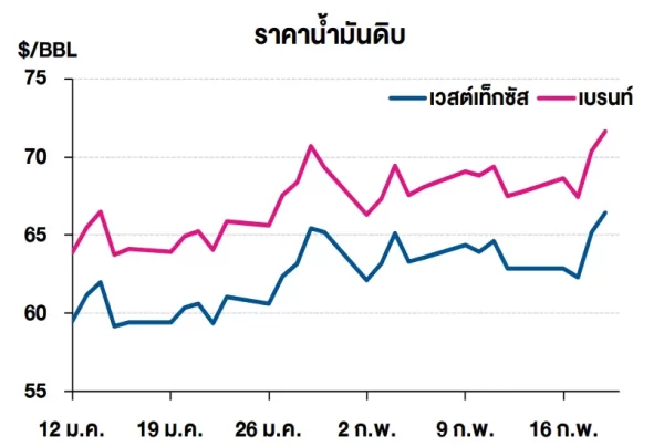 (+) การส่งออกน้ำมันดิบของซาอุดิอาระเบียปรับลดลง ในเดือน ธ.ค. 68 เหลือเพียง  6.99 ล้านบาร์เรลต่อวัน ซึ่งเป็นระดับที่ต่ำที่สุดตั้งแต่ เดือน ก.ย. 68 อย่างไรก็ดี ตลาดคาดการณ์กลุ่มโอเปกพลัสจะมีแนวโน้มที่จะกลับมาเพิ่มปริมาณการผลิตน้ำมันดิบอีกครั้ง ในไตรมาสที่ 2 ท่ามกลางการคาดการณ์การใช้น้ำมันดิบทั่วโลกที่จะปรับลดลงราว 400,000 บาร์เรลก็ตาม