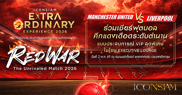 มิติหุ้น – ไอคอนสยาม แลนด์มาร์กระดับโลกริมแม่น้ำเจ้าพระยา ตอกย้ำความเป็น Global Experiential Destination ด้วยแคมเปญสุดเอ็กซ์คลูซีฟ “THE EXTRAORDINARY EXPERIENCE 2026 : RED WAR The Unrivaled Match 2026” ชวนลูกค้าคนพิเศษไปเชียร์ทีมโปรดกับศึกแดงเดือดระดับตำนาน “แมนเชสเตอร์ ยูไนเต็ด” ปะทะ “ลิเวอร์พูล” แบบสดๆ ติดขอบสนาม รับชมแมตช์แดงเดือดพร้อมสัมผัสประสบการณ์ VIP สุดพิเศษ จากที่นั่งโซน Executive Lounge ณ สนามโอลด์ แทรฟฟอร์ด เมืองแมนเชสเตอร์ ประเทศอังกฤษ สิทธิพิเศษนี้สำหรับ 8 สุดยอดนักช็อป ลูกค้าคนสำคัญของไอคอนสยามเท่านั้น