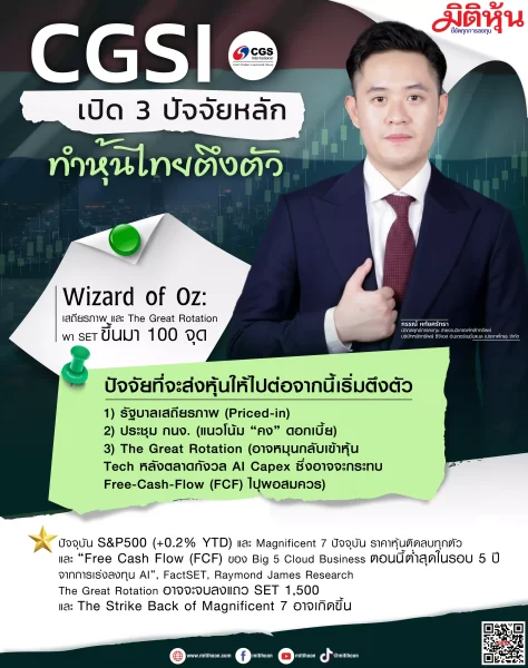 CGSI เปิด 3 ปัจจัยหลัก ทำหุ้นไทยตึงตัว