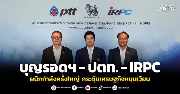 มิติหุ้น – บริษัท บุญรอดบริวเวอรี่ จำกัด บริษัท ปตท. จำกัด (มหาชน) และ บริษัท ไออาร์พีซี จำกัด (มหาชน) ร่วมประกาศความสำเร็จครั้งสำคัญ ซึ่งเป็นผลงานของทีมผู้เชี่ยวชาญร่วมกันของทั้ง 3 บริษัท ในการพัฒนานวัตกรรมพลาสติกรีไซเคิลสูตรผสมระหว่าง rPET ที่ได้จากขวดพลาสติก และ rHDPE ที่ได้จากฝาขวด ลังน้ำ และลังโซดา จากการทำงานร่วมกันเพื่อนำวัสดุที่ผ่านการใช้งานแล้วมาวิเคราะห์และพัฒนา จนได้เม็ดพลาสติกชนิดใหม่ที่มีคุณสมบัติเหนียวและแข็งแรงเป็นพิเศษ เพื่อเปลี่ยนวัสดุเหลือใช้ให้กลายเป็น “ผลิตภัณฑ์หมุนเวียน” เช่น ลังน้ำ ลังโซดาขวดเปลี่ยน หรือภาชนะพลาสติก (Plastic Handling Container) ที่ใช้งานได้จริงในภาคอุตสาหกรรม ภายใต้แนวคิดเศรษฐกิจหมุนเวียน (Circular Economy) ที่มุ่งเน้นการใช้ทรัพยากรให้เกิดประสิทธิภาพและคุ้มค่าสูงสุดต่อยอดสู่การสร้างผลิตภัณฑ์ที่ยั่งยืน