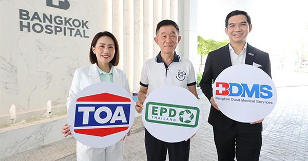 ด้าน นางสาวสุนทรี อภิชิต ผู้อำนวยการสายงานโครงการ TOA กล่าวย้ำว่า ความสำเร็จในครั้งนี้สะท้อนถึงบทบาทสำคัญของ TOA ในการขับเคลื่อนแนวทาง Sustainability Journey อย่างครบวงจร ตั้งแต่การวัดคาร์บอนฟุตพริ้นท์ การลดการปล่อยก๊าซเรือนกระจก ไปจนถึงการเปิดเผยข้อมูลอย่างโปร่งใสผ่านฉลาก EPD รายแรกของไทย การผนึกกำลังระหว่าง TOA และเครือโรงพยาบาลกรุงเทพ (BDMS) จึงเปรียบเหมือนก้าวสำคัญของภาคอุตสาหกรรมและสาธารณสุขไทย ในการยกระดับมาตรฐานอาคารสู่ความยั่งยืน เพื่อร่วมกันสร้างทางออกที่ยั่งยืนในการลดภาวะโลกเดือดและส่งมอบสิ่งแวดล้อมที่ดีให้กับสังคมไทยสืบไป