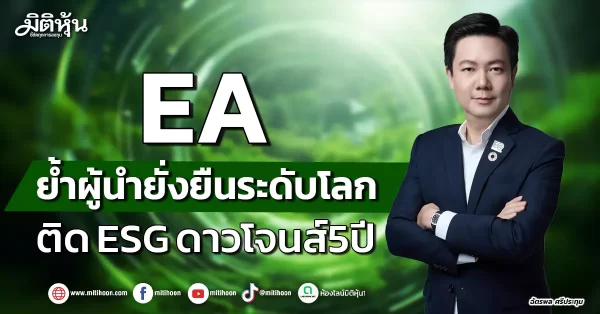 มิติหุ้น – บริษัท พลังงานบริสุทธิ์ จำกัด (มหาชน) หรือ EA ประกาศความสำเร็จด้านความยั่งยืนบนเวทีระดับโลก ด้วยการรักษาอันดับธุรกิจยั่งยืนดัชนี Dow Jones Best-in-Class ต่อเนื่องเป็นปีที่ 5 ในกลุ่มอุตสาหกรรมสาธารณูปโภคไฟฟ้า (Electric Utilities) ประจำปี 2568 พร้อมยกระดับคะแนนประเมินรวมเพิ่มขึ้นเป็น 83 คะแนน จาก 80 คะแนนในปีก่อนหน้า สะท้อนพัฒนาการเชิงคุณภาพของการดำเนินธุรกิจตามมาตรฐาน ESG ในระดับสากลอย่างต่อเนื่อง