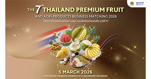 มิติหุ้น – กรมส่งเสริมการค้าระหว่างประเทศ (DITP) เตรียมจัดกิจกรรมจับคู่ธุรกิจสินค้าผลไม้สด ผลไม้แปรรูป และผลิตภัณฑ์เกษตรอื่น ๆ (ปีที่ 7)” เพื่อผลักดันผลไม้ไทยสู่ตลาดโลก งานจะจัดขึ้นในวันพฤหัสบดีที่ 5 มีนาคม 2569 ณ โรงแรมไฮแอท รีเจนซี่ กรุงเทพฯ สุขุมวิท