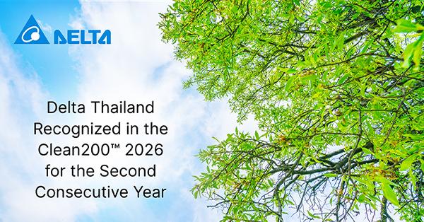 DELTA ติดอันดับ Clean200™ ต่อเนื่องเป็นปีที่สอง ตอกย้ำความมุ่งมั่นในด้านโซลูชันพลังงานสะอาดและความยั่งยืน