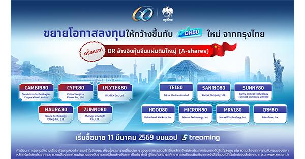 นายรวินทร์ บุญญานุสาสน์ ผู้บริหารสายงานธุรกิจตลาดเงินตลาดทุน ธนาคารกรุงไทย เปิดเผยว่า ธนาคารมุ่งเพิ่มโอกาสและทางเลือกการลงทุนต่างประเทศให้กับนักลงทุนไทย ภายใต้แนวคิด “Better Access” เพื่อให้นักลงทุนสามารถเข้าถึงตลาดทุนโลกได้อย่างสะดวก โปร่งใส และได้มาตรฐาน ช่วยต่อยอดการเติบโตของพอร์ตการลงทุนอย่างมีประสิทธิภาพ ล่าสุด เตรียมเปิดขายตราสารแสดงสิทธิในหลักทรัพย์ต่างประเทศ (DR80) เพิ่มอีก 12 หลักทรัพย์ โดยคัดเลือกหุ้นจีน A-shares ที่จดทะเบียนในตลาดเซี่ยงไฮ้และเซินเจิ้น จำนวน 5 หลักทรัพย์ ครอบคลุมกลุ่มเทคโนโลยีขั้นสูง ดาต้าเซ็นเตอร์ และพลังงาน ซึ่งสะท้อนศักยภาพเศรษฐกิจจีนได้อย่างชัดเจน รวมถึงเพิ่ม DR อ้างอิงหุ้นเมกะเทรนด์จากสหรัฐฯ ญี่ปุ่น และฮ่องกง อีก 7 หลักทรัพย์ ครอบคลุมกลุ่ม