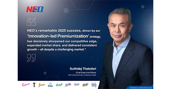 Mr. Suthidej Thakolsri, Chief Executive Officer of NEO Corporate Public Company Limited, stated, “Our success in 2025, with sales reaching 10,738 million Baht and growth rates exceeding market averages, reflects our agility in adapting strategies to meet evolving consumer demands, expand distribution channels and market penetration into new consumer segments. Furthermore, our ‘Innovation-led Premiumization’ strategy has provided a competitive edge, boosting market share and driving sustained growth, even amidst challenging market conditions. Moving forward in 2026, we will elevate the development of innovative products to reach an even wider consumer base. We will delve deeper into analyzing unmet consumer needs, aiming to deliver more tailored experiences and solutions that enhance their quality of life. These innovations will create added value for our brands to resonate with consumers for the long term.”