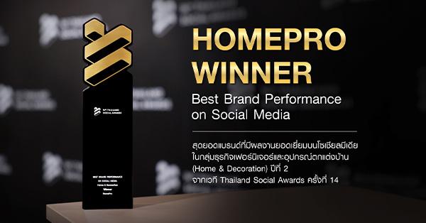 ในปีนี้ โฮมโปรได้รับรางวัล WINNER กลุ่ม Best Brand Performance on Social Media สาขา Home & Decoration จากเวที Thailand Social Awards ครั้งที่ 14 ซึ่งจัดโดย บริษัท ไวซ์ไซท์ (ประเทศไทย) จำกัด ต่อเนื่องเป็นปีที่ 2 ตอกย้ำความแข็งแกร่งด้านการสื่อสารดิจิทัลและการสร้างการมีส่วนร่วมบนแพลตฟอร์มโซเชียลมีเดียอย่างมีประสิทธิภาพ