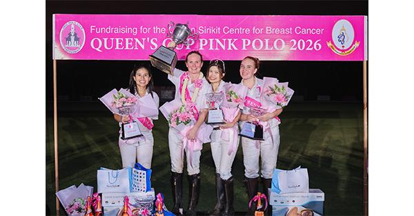 Mitihoon – The 17th edition of the Queen’s Cup Pink Polo 2026 concluded with great success and heartfelt celebration on Saturday 28 February 2026, at the Thai Polo & Equestrian Club, Pattaya. The international women’s charity polo tournament was held in competition for The Royal Trophy graciously bestowed by Her Majesty Queen Sirikit the Queen Mother, with proceeds dedicated to supporting underprivileged breast cancer patients under the care of the Queen Sirikit Centre for Breast Cancer.
