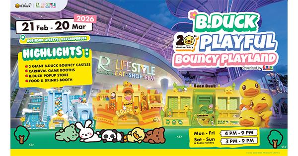 โรบินสันไลฟ์สไตล์ ปักหมุดแลนด์มาร์กแห่งความสนุกของครอบครัว ร่วมฉลอง 20 ปี ของ B.Duck 20th Playful Bouncy Playland ชวนผจญภัยในดินแดนเด้งดึ๋งกับเจ้าเป็ดเหลือง ระหว่างวันที่ 21 ก.พ. 69 – 20 มี.ค. 69 ที่โรบินสันไลฟ์สไตล์ ราชพฤกษ์