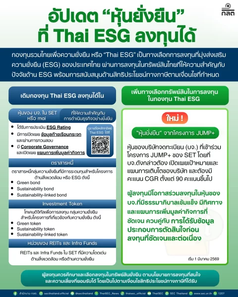 อัปเดต “หุ้นยั่งยืน” ที่ Thai ESG ลงทุนได้