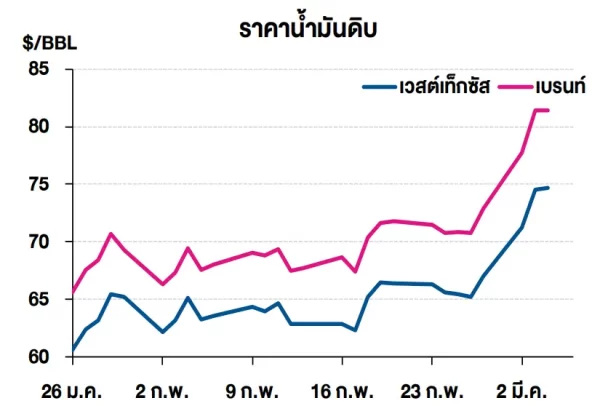 (+) ราคาน้ำมันดิบเวสต์เท็กซัสปรับเพิ่มขึ้นเล็กน้อย ในขณะที่น้ำมันดิบเบรนท์ ทรงตัวโดยตลาดยังคงเผชิญความผันผวน จากสงครามที่เกิดขึ้นต่อเนื่องหลังอิสราเอล และ สหรัฐฯ ได้ทำการเปิดปฏิบัติการโจมตีอิหร่านเป็นวันที่ 5 ส่งผลให้ภูมิภาคตะวันออกกลางมีความตึงเครียดมากขึ้น และการขนส่งทางเรือบริเวณช่องแคบฮอร์มุซซึ่งเป็นยุทธศาสตร์ที่สำคัญของการขนส่งน้ำมันดิบและก๊าซธรรมชาติหยุดชะงัก โดยสหรัฐฯ มีการส่งสัญญาณว่าจะมีการปฏิบัติการทางทหารเป็นเวลา 4-5 สัปดาห์ ในขณะที่อิหร่านมีความพยายามที่จะสร้างความขัดแย้งไปสู่ระดับภูมิภาค